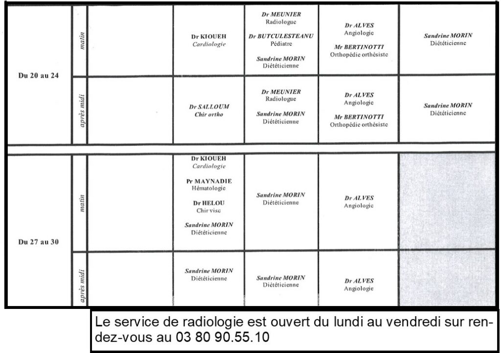 Dr Fanny Morel, Hopital de Sauieu 1er et 3è mardi du mois : 03 80 89 64 72